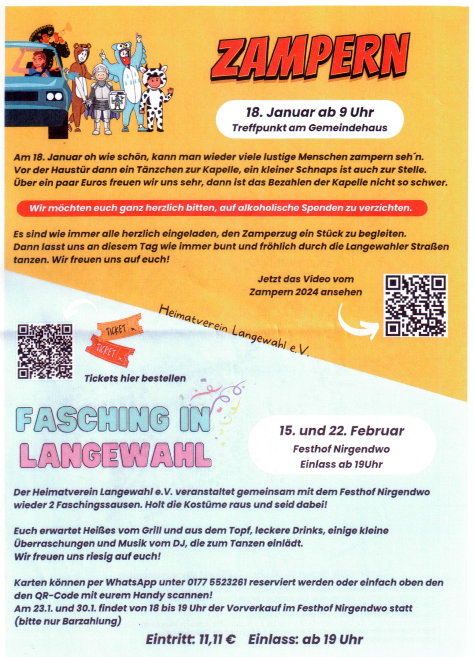 Kartenvorverkauf am 28.01.2020 ab 18.00 — 19.00 Uhr in der Gemeinde Langewahl